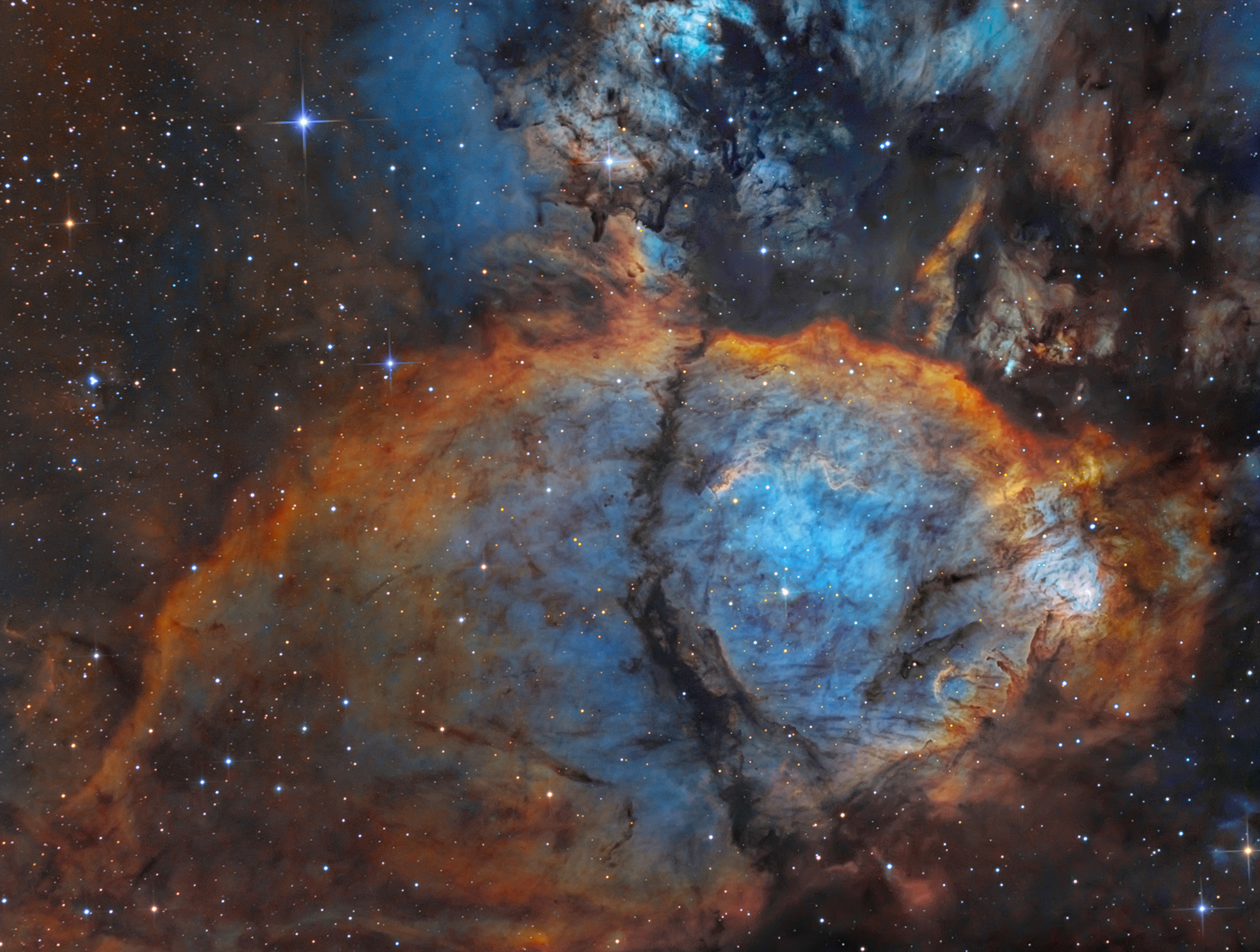 Farbmischung: R = SII, G =Ha, B = OIII