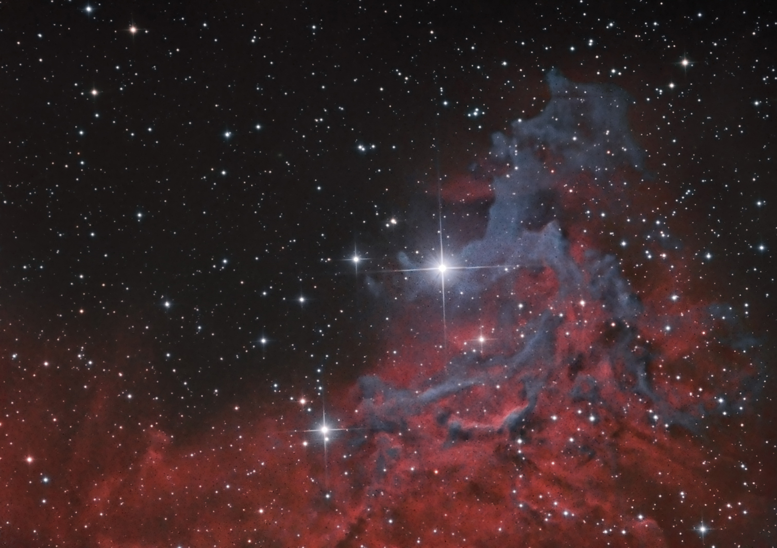 IC 405 auch The Flaming Star Nebula genannt, ist ca. 0,5x0,3 Grad groß und eine Mischung aus Emissions-