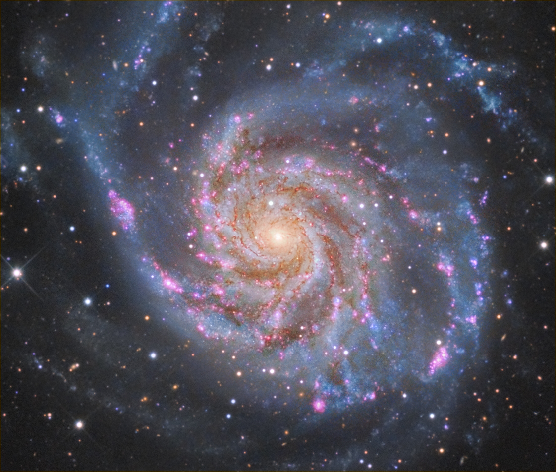 Messier 101 ist eine Spiralgalaxie mit den Abmessungen 28,8' × 26,9' und der scheinbaren Helligkeit von 7,5 mag im Sternbild Großer Bär. Ihre Entfernung beträgt 27 Millionen Lichtjahre, ihr Durchmesser 170.000 Lj.