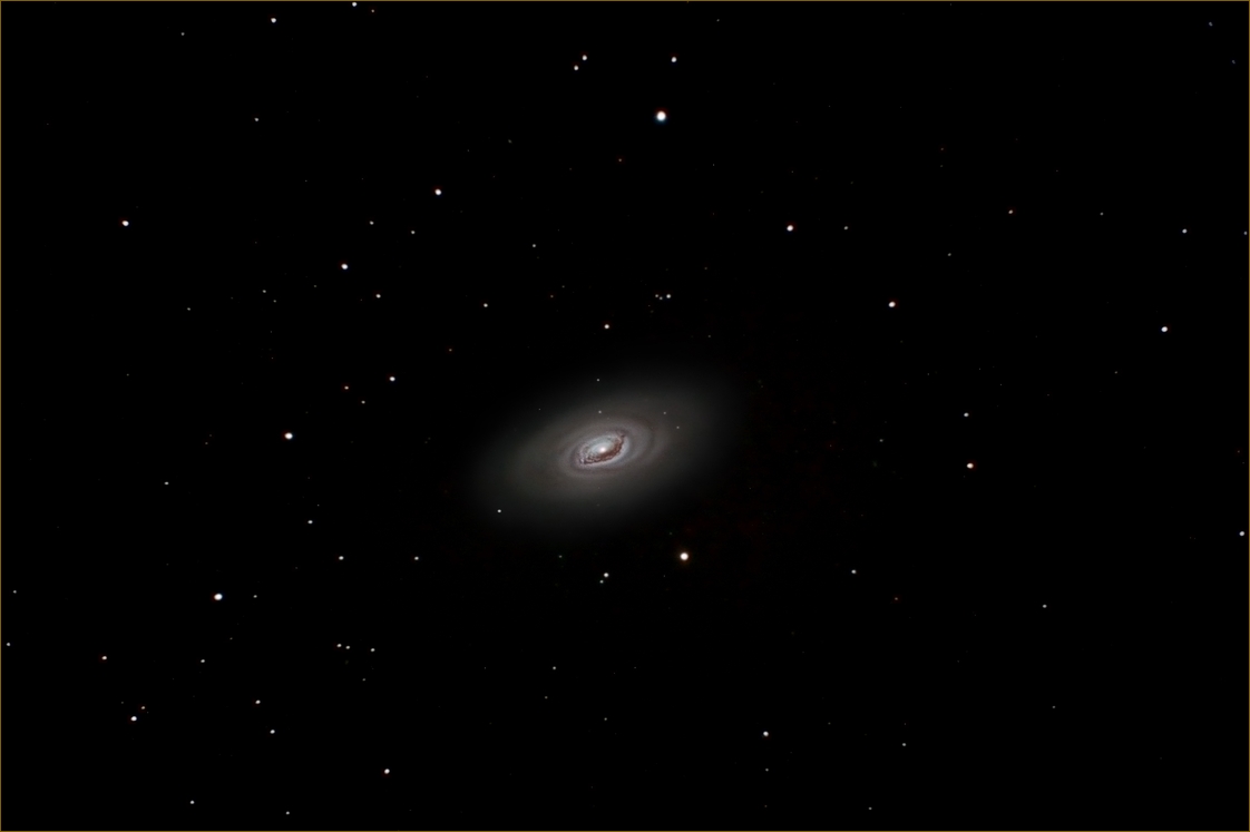 Messier 64 ist eine Spiralgalaxie mit den Abmessungen 10,0' × 5,4' und der scheinbaren Helligkeit von +8,5 mag im Sternbild Haar der Berenike. Sie besitzt eine große ovale Dunkelwolke nördlich des Kerns mit einer Ausdehnung von etwa 8000 Lichtjahren und einer Größe von 9,2 × 4,6 Bogenminuten, die wahrscheinlich durch Verschmelzung mit einer kleinen, sehr staubreichen Galaxie entstanden ist. Die etwa 24 Mio. Lichtjahre entfernte Galaxie wurde früher als Mitglied der Canes-