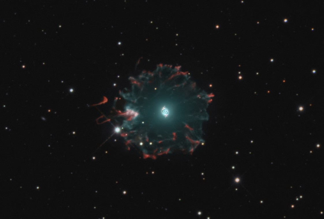Der Katzenaugennebel (NGC 6543) ist ein Planetarischer Nebel im Sternbild Drache. Er ist strukturell einer der komplexesten unter den bekannten Nebeln. Hochauflösende Aufnahmen des Hubble-Weltraumteleskops enthüllten außergewöhnliche Strukturen wie Knoten, Jets und bogenartige Merkmale. Visuell ähnelt er dem Katzenauge und wurde entsprechend benannt.