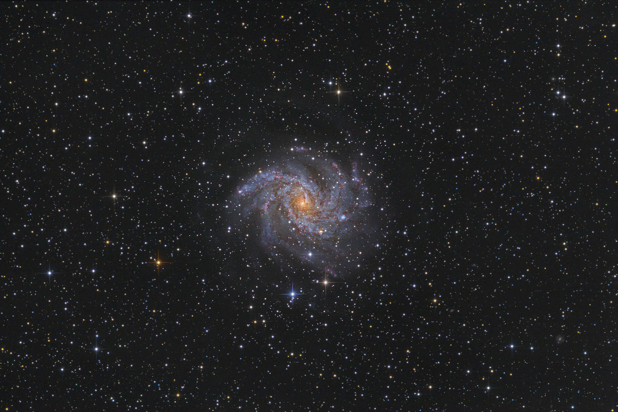 NGC 6946 ist eine Spiralgalaxie im Sternbild Kepheus an der Grenze zum Sternbild Cygnus. NGC 6946 hat eine Winkelausdehnung von 11,5′ × 9,8′ und eine scheinbare Helligkeit von 9,0 mag. Die Galaxie liegt nahe unserer galaktischen Ebene, daher wird das Licht, das von NGC 6946 zu uns kommt, durch Gas und Staub aus unserer Galaxie stark abgedunkelt. Dies erschwert die Beobachtung dieser Galaxie und ihrer Mitglieder und besonders auch die Bestimmung ihrer Entfernung.